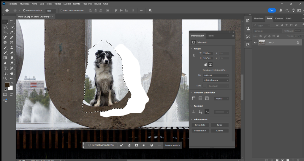 Kaikki koirat lisäsin yksitellen kuvaan ja korjailin reunoja jossa ne sulautuisivat hyvin.